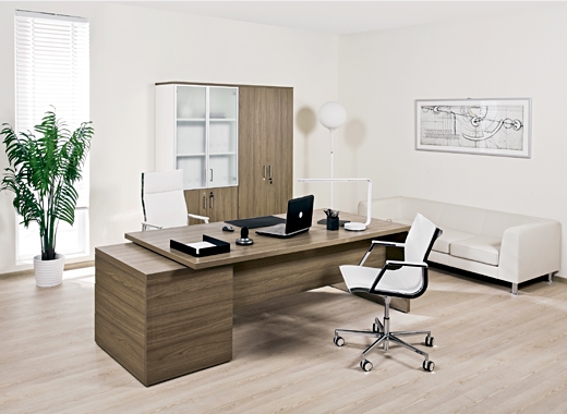 Какой кабинет нужен молодому, уверенному в себе руководителю? Комфортный, функциональный, современный, универсальный. Это своего рода конструктор, где каждый может создать именно ту композицию, которая будет наиболее удобной и оптимальной. На ваш выбор предлагается восемь различных композиций столов. Если еще учесть то, что опорные тумбы и приставки могут устанавливаться как с правой, так и с левой стороны от столешницы, то в итоге можно получить четырнадцать вариантов письменных столов. Благородный и спокойный орех в сочетании с белым цветом – тренд 2010-х годов