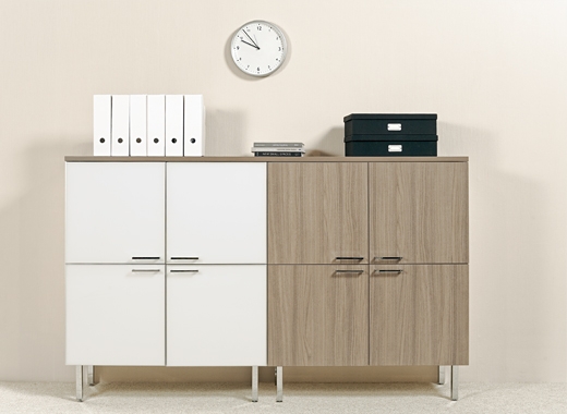 Шкафы – наборная система; двери возможны в меламине и стекле, каркас в белом меламине