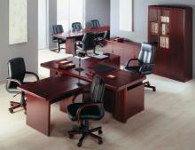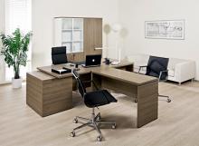 Буком облицованы торцы крышек столов, боковые стенки столов, шкафов и тумб, топы шкафов.
