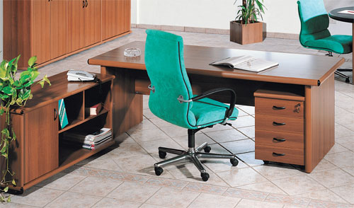 Шкафы и рабочие столы установлены на регулируемых опорах, компенсирующих неровности пола. Тумбы и приставные столы удобно перемещаются благодаря колесным опорам. Номенклатура средних и высоких шкафов обеспечивает разнообразие вариантов обстановки кабинета. Рабочее место руководителя может дополняться столом переговоров.