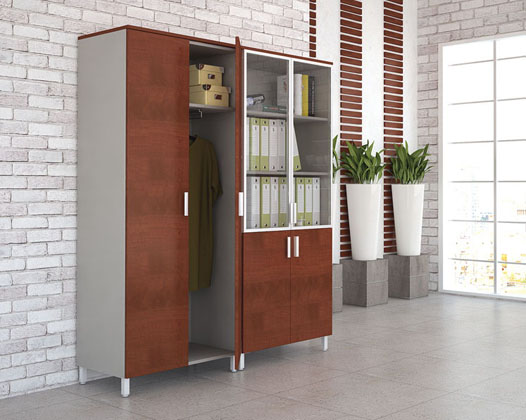 Большое количество эксклюзивных дизайнерских и конструктивных решений: декоративные сдвоенные полки, сервисная тумба по принципу конструктора, возможность комплектации тумбы встроенным холодильником и т.д. Широкий модельный ряд стеллажей позволяет создавать множество вариантов стеллажных групп, которые формируют функциональный кабинет в любом, даже ограниченном пространстве.