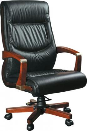 Кожа высшей категории, газлифт, механизм качания, крестовина и подлокотники с метал. вставками - дерево