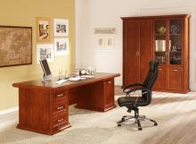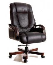 Кожа, газлифт, механизм качания с фиксацией угла наклона, крестовина дерево(темный орех), подлокотники дерево+ кожаные накладки