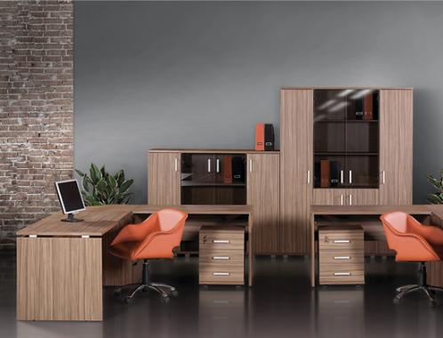 Каркасы стеллажей и тумб, двери, лицевые панели ящиков тумб изготовлены из ЛДСП толщиной 16мм.