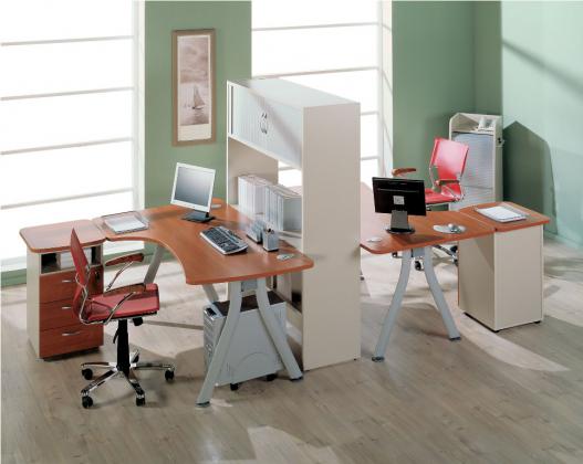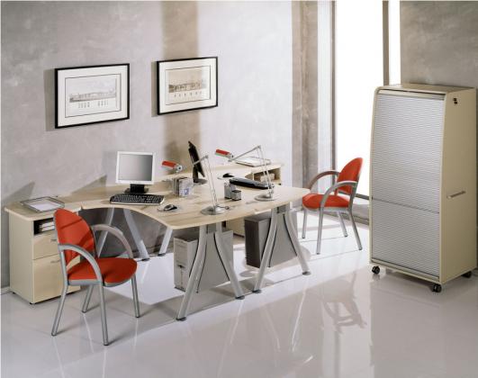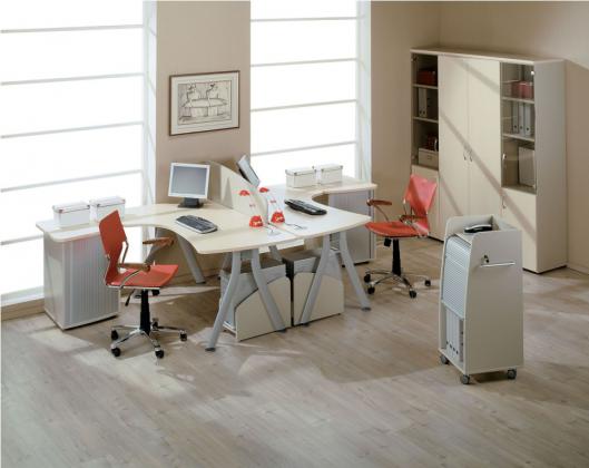Столы эргономичных форм не имеют острых углов и комбинируются как между собой, так и с приставными элементами и тумбами. Разнообразие соединительных и приставных элементов, многочисленность комплектаций позволяет создать большое количество вариантов организации как коллективных, так и индивидуальных рабочих мест.