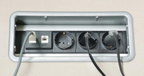В серии «Спринт» удобная система размещения различных кабелей оргтехники. Все провода подходят к металлическому лотку, предназначенному для размещения сетевого фильтра. Сам лоток расположен под столешницей. Конфигурация пластиковой крышки обеспечивает свободный доступ пользователя к «пилоту». Размеры лотка позволяют убрать остатки проводов, освобождая тем самым рабочее пространство на столе. Предусмотрено место для электрических и телефонных кабелей, которые проходят через все рабочие места.