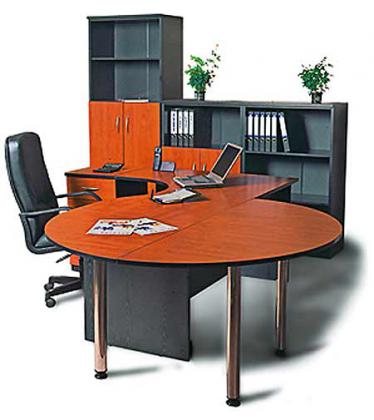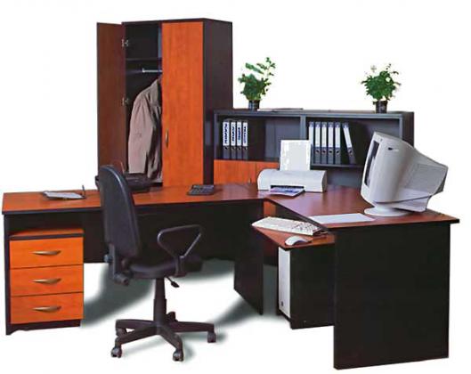 Мебель для персонала "Советник" - позволяет оснастить Ваше рабочее место дешевой и качественной мебелью для персонала. Офисная мебель для персонала эконом класса «Советник» выполнена из ЛДСП, меламиновое покрытие, цвета: "черный шагрень", "груша+черный шагрень". Столешницы, боковые опоры столов, стеллажей, шкафов, верхние топы тумбочек и стеллажей имеют толщину 22мм., кромка фасадов (столешницы, топы, двери, крышки ящиков) ПВХ 2мм., другие детали оклеены кромкой ПВХ 0.5мм..Столы и стеллажи снабжены регулируемыми по высоте опорами. Состав серии постоянно обновляется и расширяется.