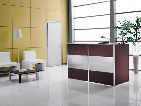 Рады представить вам новинку каталога оперативной мебели под названием Next. Ресепшн Next может быть изготовлена в двух цветовых вариантах (светлый дуб и темный дуб), что позволяет легко интегрировать ее в помещение с любым дизайном. Всего коллекция включает четыре типа стоек. Первая из них представляет собой прямоугольную стойку, которая имитирует темное дерево и имеет вставки из матового оргстекла. Эту стойку ресепшн Next можно назвать наиболее современной моделью серии: она легко впишется в современный дизайн с элементами минимализма.