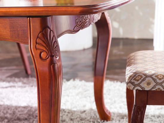 Mona Ricci - классический обеденный стол на 4-6 персон. Резьба по краям столешницы и по ножкам. Детали стола изготовлены из массива гевеи. Особопрочный лак, препятствующий появлению царапин и повреждений. материал - массив покрытие - лак