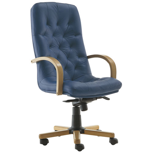 Обивка изготавливается из кожи высшего качества или синтетического материала "микролюкс", наиболее популярного в странах ЕС. Кресло может устанавливаться на крестовину c деревянными элементами и на деревянные полозья. Комплектуется как специальными роликами, улучшающими сохранность напольных покрытий, так и закрытыми роликами "Extra".