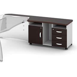 Используется ламинированная плита толщиной 38 мм и 22 мм стандарта эмиссии Е1. Торцы плиты облицованы прочной профилированной противоударной кромкой производства Германии. Цвет кромки соответствует цвету ДСП. Применяется фурнитура ведущих европейских производителей, в том числе центральные замки для тумб, роликовые направляющие выдвижных ящиков и регулируемые по высоте опоры столов и шкафов.